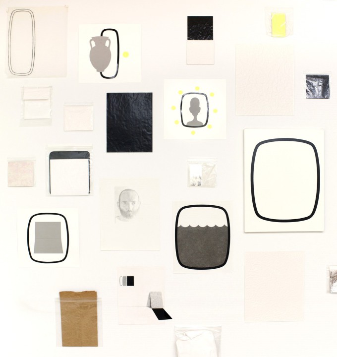 prepared paper, some are charcoal or pencil drawings, some are finger-painted with gesso, and then with black, alkyd paint, some
