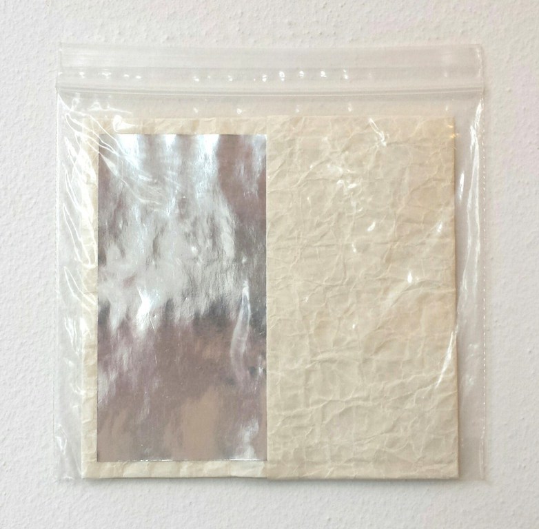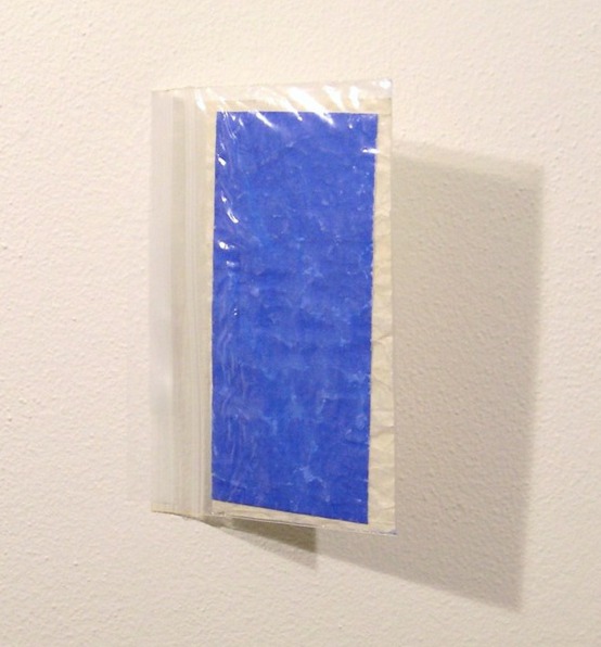 framing. Sometimes the handmade portions of these works are sealed inside the baggies, and other times they're not.